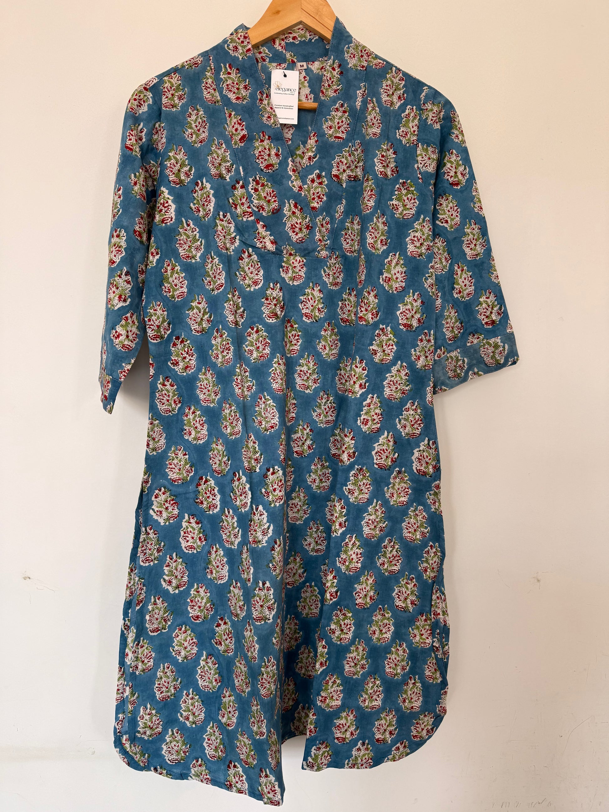 Hand Block Printed Classic Kurta: Blue