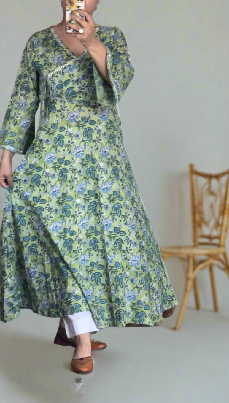 Hand Block Printed Angarkha Kurta: Light Kurta