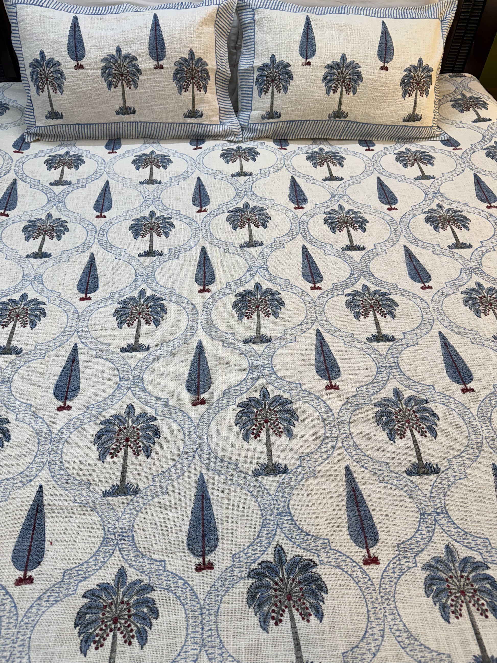 Hand Block Printed TNT Bedcover: Palms & Cypress